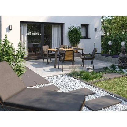 Der Dining-Tisch Olary ist der stilvolle Blickfang für Ihren Garten. Der Tisch besteht aus pulverbeschichtetem Aluminium in Schwarz. Dank der hochwertigen Oberflächenbeschichtung ist er äußerst witterungsbeständig und für die dauerhafte Verwendung im Außenbereich geeignet. Das Material ist sehr leicht, weshalb sich der Tisch problemlos verschieben lässt, wie es Ihnen gefällt. Die Tischplatte ist zu 100 % aus Akazien-Hartholz gefertigt und begeistert durch einen exquisiten Teak-Look.