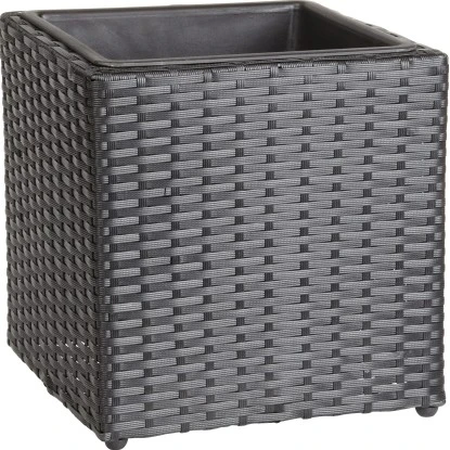 Der Pflanzkübel Polyrattan ist ein Pflanzgefäß für den Innen- und Außenbereich und setzt dekorative Akzente im Haus, auf der Terrasse oder im Garten. Das Pflanzgefäß ist aus einem hochwertigen PE-Kunststoffgeflecht hergestellt, das über einen rostbeständigen Alu-Rahmen gewebt ist. Die Faser ist UV- und temperaturbeständig, langlebig und pflegeleicht. Der Kunststoffeinsatz kann bequem außerhalb des Gefäßes bepflanzt und dann eingesetzt werden und bietet mit einer Größe von 24 cm x 24 cm 24,5 cm ausreichend Platz. Gegenüber Einsätzen aus anderen Materialien bietet dieser den Vorteil, nicht zu rosten und absolut wasserdicht zu sein. Bei Außenaufstellung einfach ein Loch in den Boden bohren, um Staunässe zu vermeiden.
