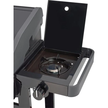 Neben dem direkten Grillen bietet dieser Grill die Möglichkeit, durch indirektes Grillen Ihr Grillgut besonders schonend und gleichmäßig zu garen. Zudem bereiten Sie auf dem Griller alles zu, was auch in der Küche möglich wäre – praktisch und alles an einem Ort. Der emaillierte Grillrost bietet eine Gesamtgrillfläche von 60,5 x 41 cm. Mit Hilfe einer Fettauffangschale lässt sich abtropfendes Fett leicht entfernen und vereinfacht die Reinigung. Durch das integrierte Thermometer behalten Sie die volle Kontrolle über Ihr Grillgut und finden leicht die passende Temperatur. Auf dem praktischen Seitenkocher können sie parallel Saucen oder Beilagen zubereiten. Dank des klappbaren Seitentisches steht Ihnen genügend Ablagefläche für Speisen, Geschirr oder Grillbesteck zur Verfügung. Wenn Sie den Vancouver Gasgrill platzsparend verstauen möchten, klappen Sie den Seitentisch wieder herunter. Auf diese Art und Weise findet der Grill überall einen Platz. Die Gasflasche lässt sich einfach unter dem Grill und hinter der Blende unterbringen. Der hochwertige Grill ist zudem mit zwei stabilen Rädern mit gummierter Lauffläche ausgestattet und lässt sich bequem zu der gewünschten Grillstelle schieben.