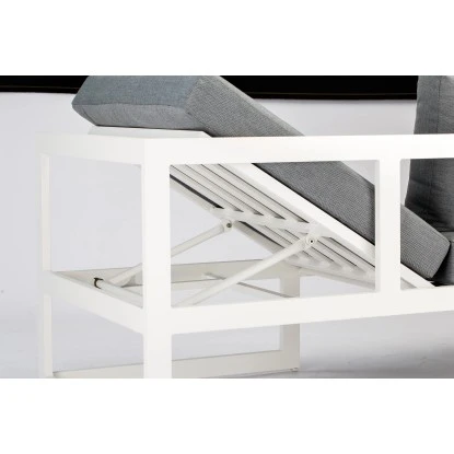 Die Lounge-Gruppe Rhodos in Weiß-Grau ist eine moderne Sitzgruppe mit einem anthrazitfarbenem Gestell aus rostfreiem Aluminium und besteht aus einem 3-Sitzer, einem 2-Sitzer und einem Tisch. Mit dem mehrstufig verstellbaren Kopfelement des 3-Sitzers wird die Lounge im Handumdrehen zur äußerst komfortablen Liege. Die Polsterbezüge bestehen aus hautsympathischem Sensotex-Gewebe (100 % Polyester), sind mit einem Reißverschluss ausgestattet und können gewaschen werden. Zudem gehört ein praktischer Couch-Tisch mit Milchglas-Platte in modernem Design zum Lieferumfang dazu.