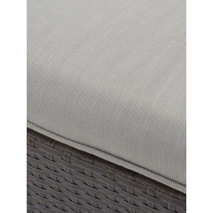 Die Garten-Loungemöbel sind handgeflochten, wodurch sie zu einem edlen Unikat werden. Das Polyrattan-Geflecht in der Farbe Deep Water ist witterungsbeständig. Durch das leichte, jedoch stabile Aluminiumgestell punktet das Set mit einem einfachen Handling, da die einzelnen Möbelstücke leicht an die gewünschte Stelle bewegt werden können. Die bequemen Auflagen und Kissen in der Farbe Concrete sind mitenthalten. Die Bezüge bestehen aus 100 % Polyester. Schaumstoff mit einer Stärke von 10 cm ist das Füllmaterial der Sitzkissen. Die Rückenkissen sind mit gesponnenem Polyester, das 6 cm Stärke aufweist, gefüllt.