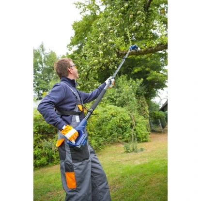 Die LUX-TOOLS Akku-Teleskop-Astsäge A-AS-18 Li/20 T ist das ideale Gerät zum einfachen und bequemen Astsägen sowie Schneiden von Baumkronen und hohen Strauchgewächsen. Der ergonomische Teleskopstiel mit Softgrip-Handgriff ist von 190 cm bis 306 cm teleskopierbar und das Gerät hat eine Schwertlänge von 20 cm. Der im Lieferumfang enthaltene 18 V Samsung-Marken-Akku auf Lithium-Ionen-Basis mit 3 Ah liefert eine Laufzeit von ca. 50 Minuten pro Akkuladung.