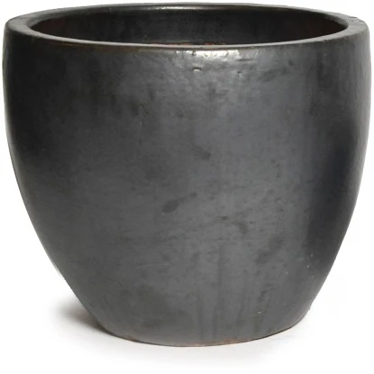 Der M Collections Pflanztopf Glasiert Egg Pot Ø 48 cm x 41 cm in der Farbe Schwarz ist in der klassisch, modernen Ausstrahlung ein echter Blickfang für jede Terrasse, Garten oder Balkon.